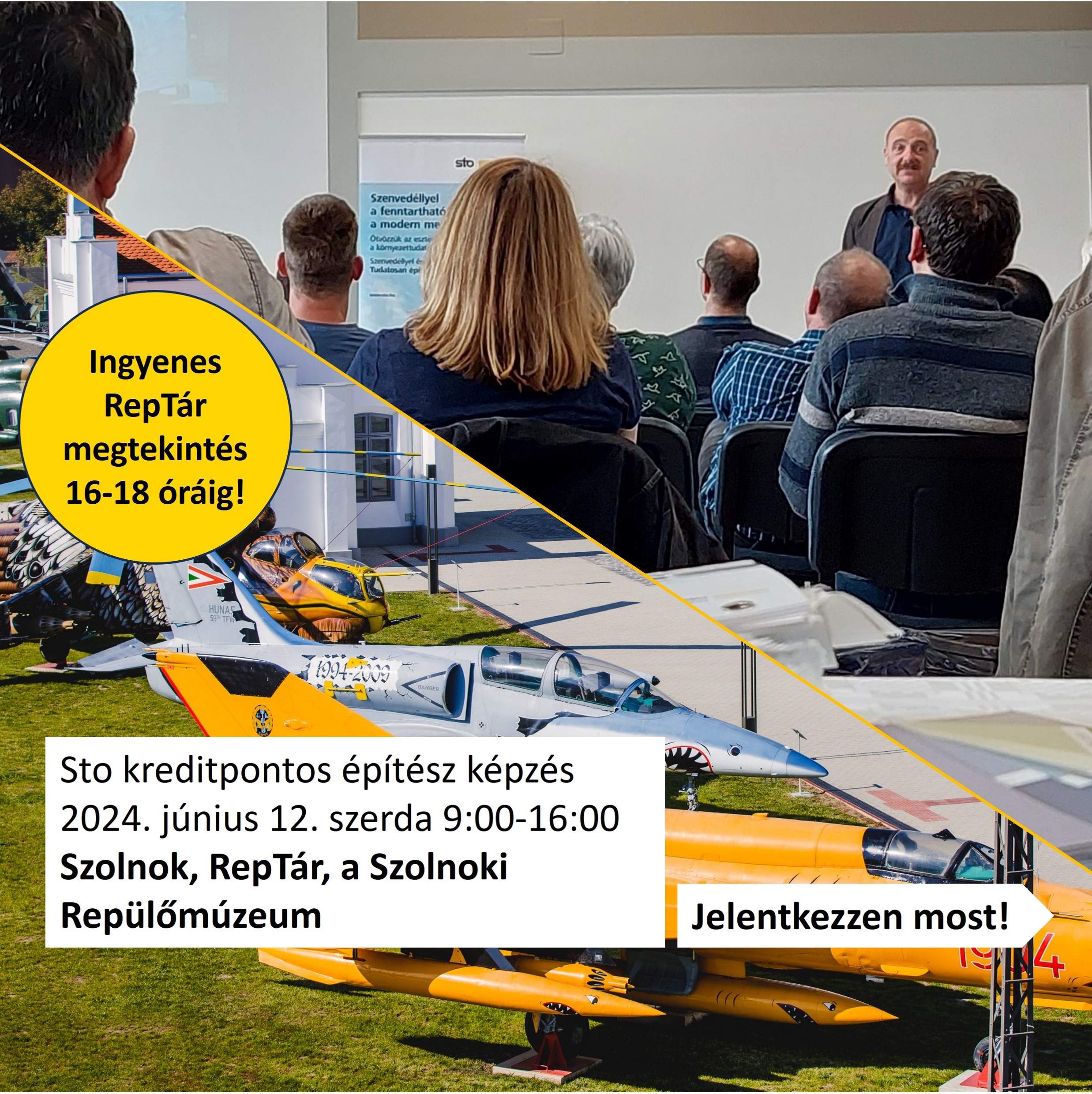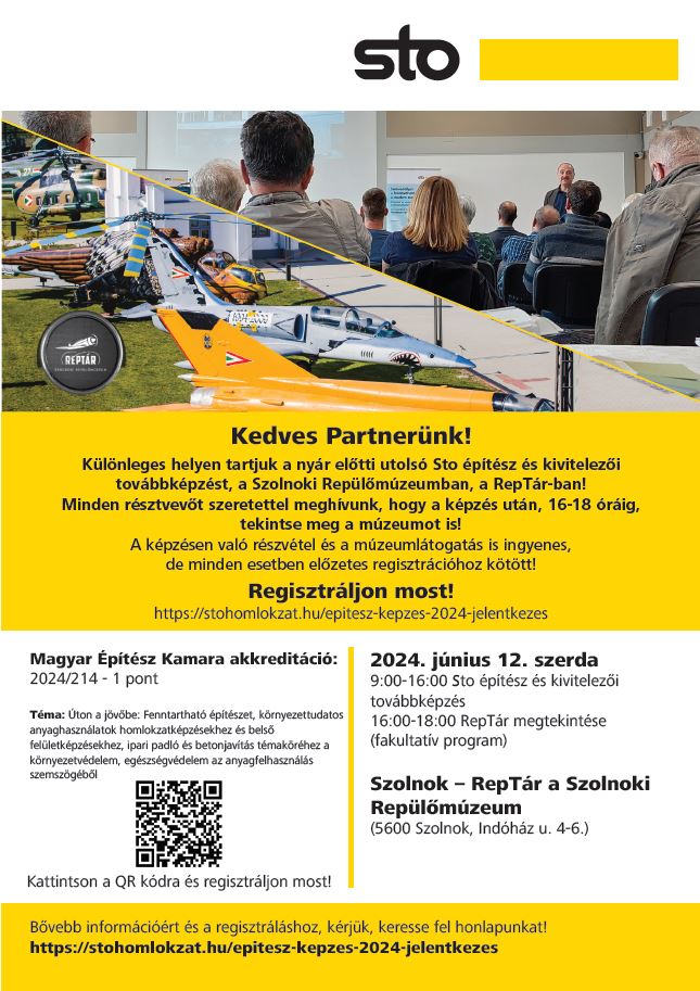 Különleges helyen tartjuk a nyár előtti utolsó Sto építész és kivitelezői továbbképzést, a Szolnoki Repülőmúzeumban, a RepTár-ban!